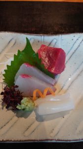 本マグロ赤身は程よい油でアオリイカは身厚であ甘く、白身はコリコリ全て洗練されたお刺身でした。