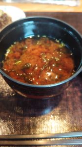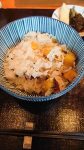 季節によって具材が変わる、釜炊きご飯はいつも絶妙のタイミングの美味しさで、🍠薩摩芋がとても甘く赤だし味噌汁は海藻入りでからだに優しいです。