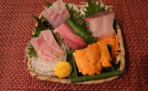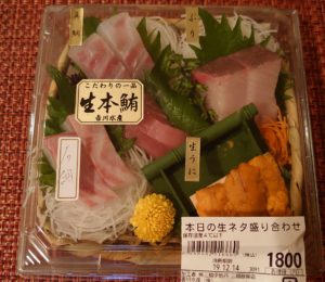 地下3階の吉川水産本日のネタ盛り合わせ¥1,800税込は雲丹に目がひかれたのと、