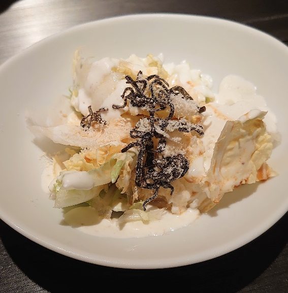 本日の銀座4丁目セットメニューの1品目は、とても印象的な歯ざわりのサクサクの白菜サラダは
