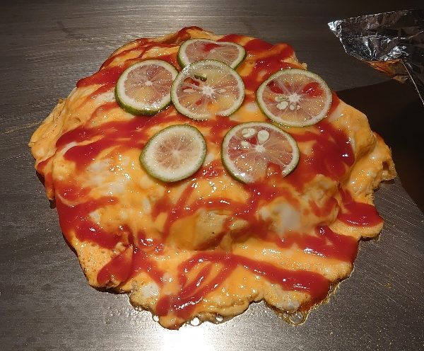 卵の焼き具合もお好み焼きのテイストを感じられる、焼き具合です。2名用