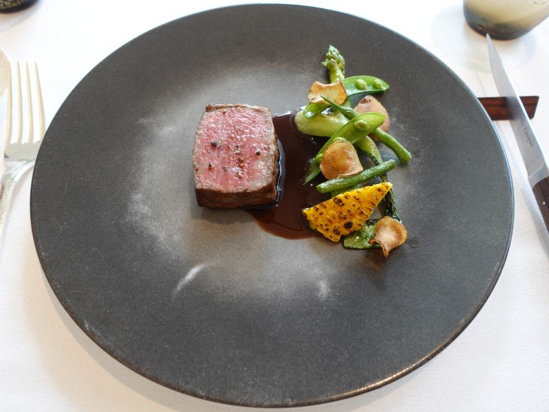 Aloyau de Boeuf “Akaushi” de Kumamoto Grillé au Charbon de Bois accompagné de Légumes de Saison, Sauce Douce Vin Rouge Japonais