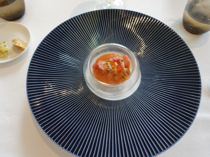 鰹のミキュイ サラダ仕立てハーブ香るナッツのソースとジュ・ド・ヴォー