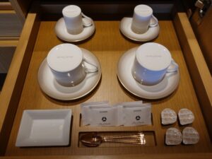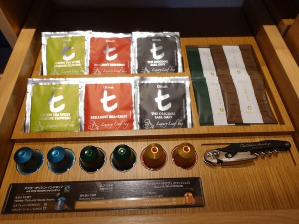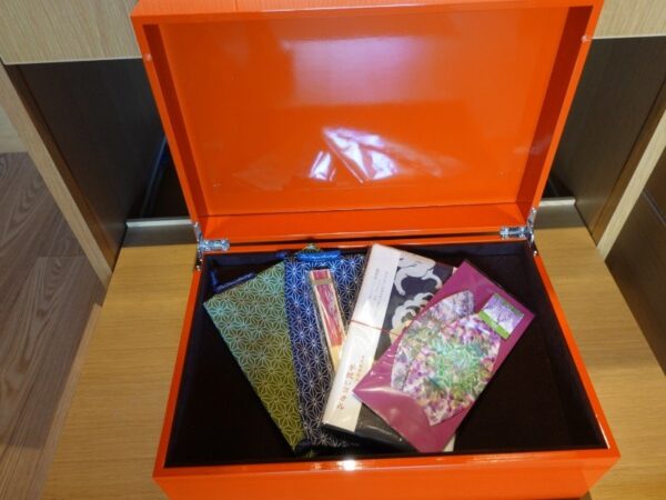 ミニバーの下段の朱赤の玉手箱には、宿泊プレゼントが!!入っています。