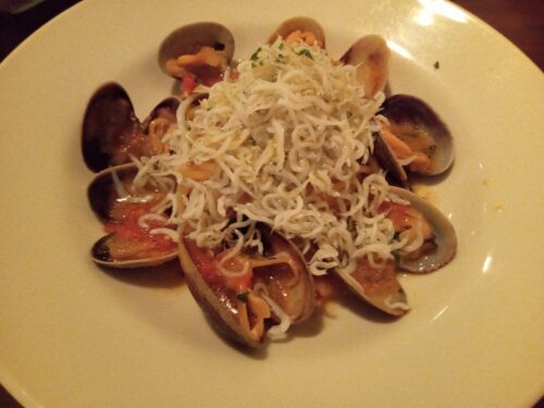 シラスとアサリのパスタはフレッシュトマトがアクセントのどんどんフォークが進むテイストです☺