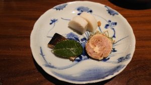 奥にはグループで座れるテーブル席もあります。粋コース(お料理とお蕎麦4品コース)をいただきました。