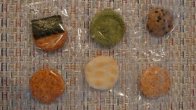 海苔、 抹茶 、胡麻、 梅ざらめ 、サラダ、しょうゆの6種類入り