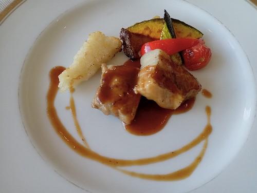 長崎産諫美豚のグリル、循環農法米にこまるのガレット