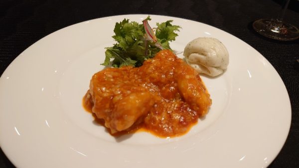 幾度も頂いているエビチリは蒸しパンに付けてソースも全て頂きます。エビは尾も取ってありぷりぷり