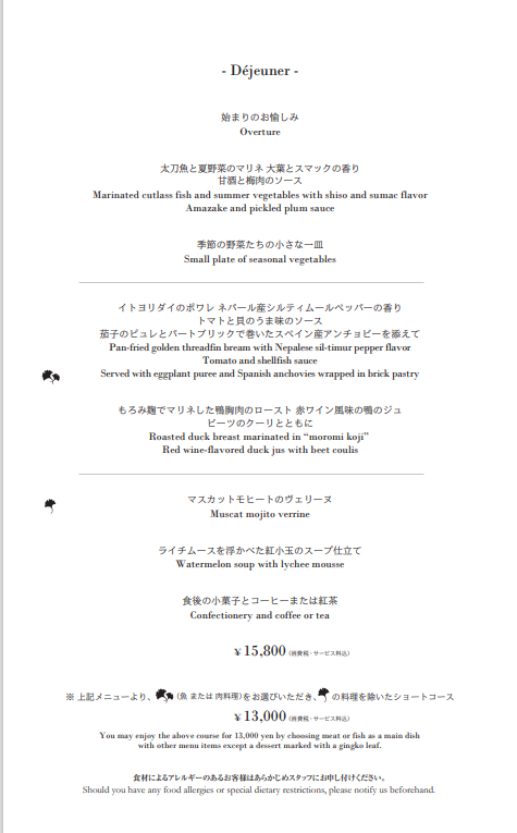 フランス料理のエスプリと日本のもてなしの美学に魅了され、日本各地の厳選食材が見事に織りなす