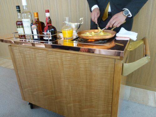 伝統のクレープシュゼットは目の前で調理して頂けます。