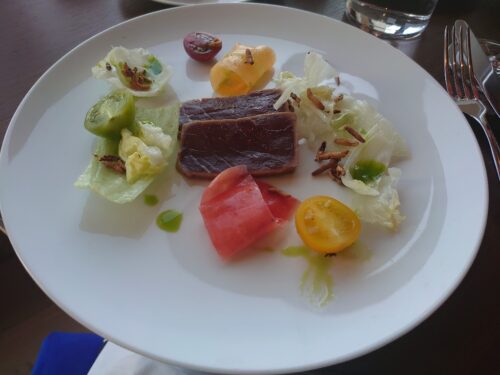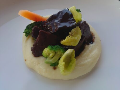 メインは子牛のほほ肉とマッシュポテトで、サークルモニュメントのような