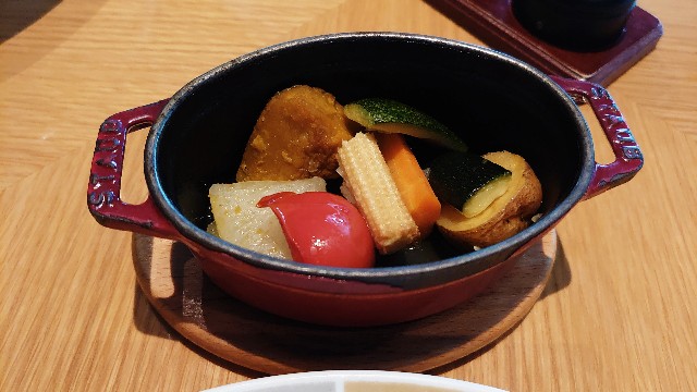 付け合せのORIGAMIのお得意ココットは野菜が丁度良い火入れで、素材に手抜きがありません。