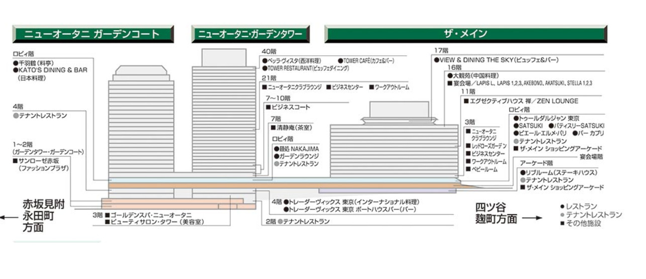 エグゼクティブハウス 禅は、ホテルニューオータニ(東京)本館ザ・メイン11・12階に位置する