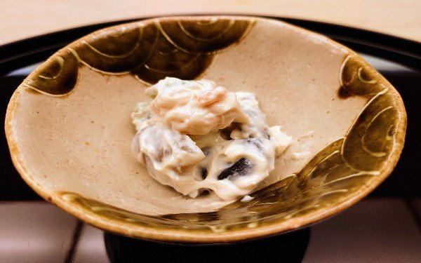 芝海老 天豆 蒟蒻 焼椎茸 白和え
