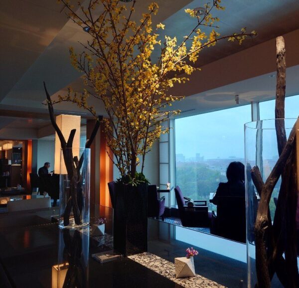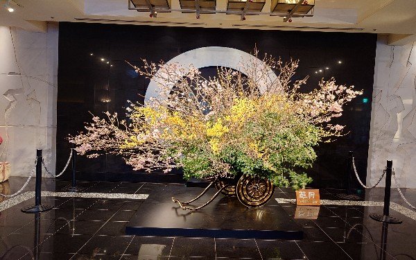 ザメインロビーの草月の生け花は何時も圧巻の存在感です。