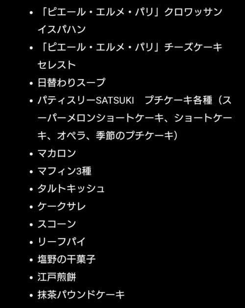 和食もありますが、ピエールエルメのパン等品数の多さには驚きます。