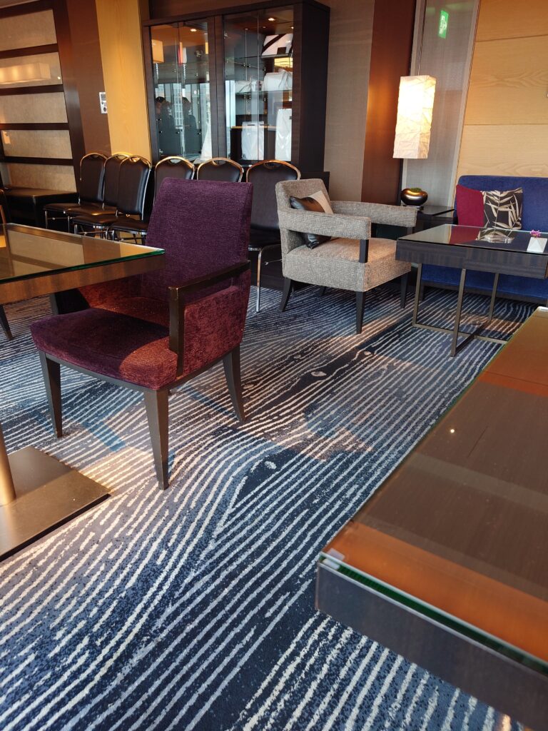 フカフカです。ラウンジフロアーの床も波柄のようなネイビーが素敵でした。