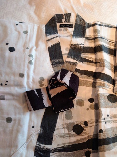 浴衣パジャマと両方がベットの上に置いてありました。パジャマは肌触りが良いですが紐開閉は