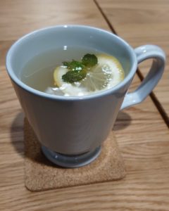 別でオーダーした自家製ジンジャーエールは¥700税込は国産生姜を細かく刻みスパイスで漬け込んだジンジャーシロップはかなり好みで、底にたくさんのみじん切りで程良い甘辛生姜がたくさん沈んでいます。レモンとミントも相性ばっちりで自宅でも飲みたい一杯でした。